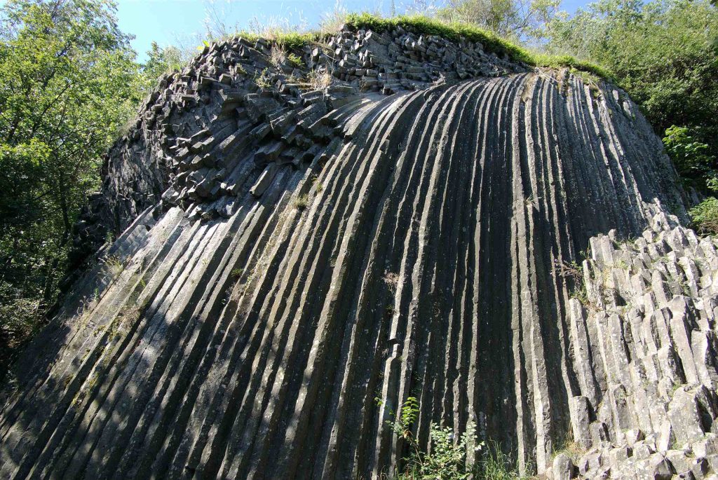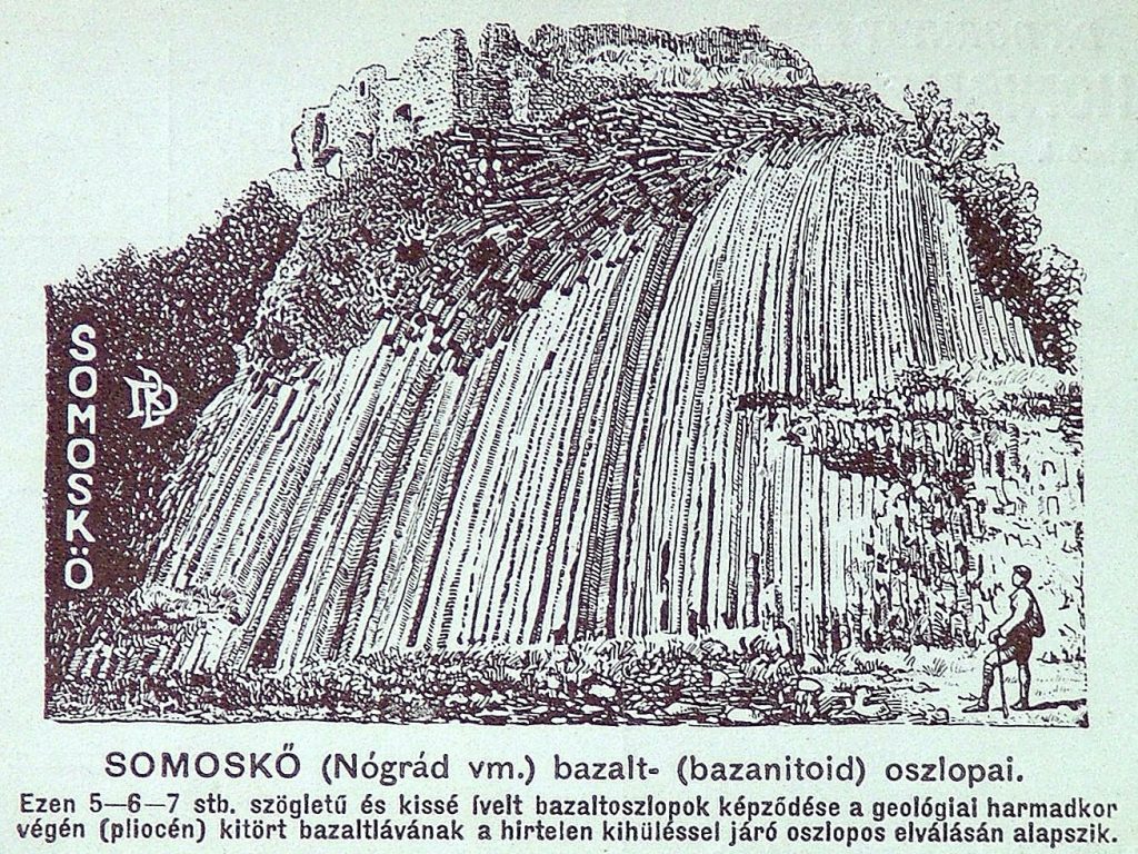 A térség talán legismertebb és leglátványosabb geológiai képződménye a Somos-kő csúcsát koronázó középkori vár alatt, a geopark szlovákiai oldalán található ún. „bazaltzuhatag”, amely a felszínre került láva lassú kihűlésének eredményeként jött létre. Geoturisztikai szempontból kiemelkedő, nemzetközi jelentőségű a bazaltömlés 15-20 cm széles öt-és hatszögletű íves oszlopaival, amely egyúttal mint egy szép geometriai alakzat is rendkívül vonzó az emberi szem számára. Az attrakció kialakulásában szerepet kapott az emberi tevékenység is, hiszen az innen lebányászott kőzetekből épült a felette lévő 13. századi vár.