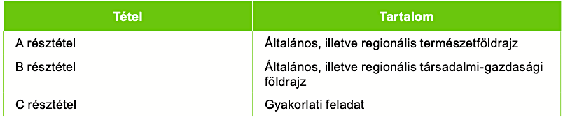 A szóbeli vizsgatételének szerkezete a 2005 előtti földrajz érettségin