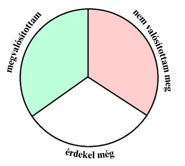 Idézd fel a feladat elvégzése előtt kitűzött céljaidat, majd írj legalább egy gondolatot a célok megvalósításával kapcsolatban a diagram mindegyik részébe!
