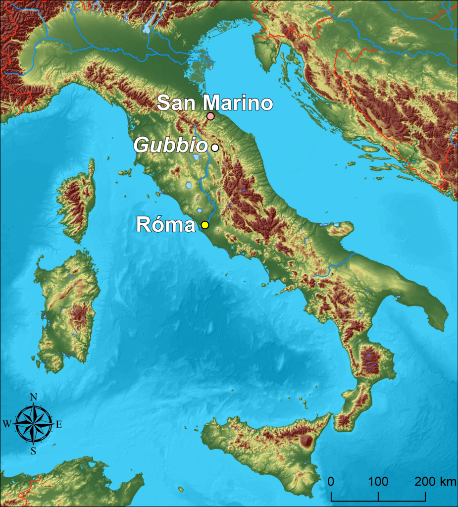 2. Milyen messze van Gubbio Assisitől? Járjátok be a környéket egy online térkép segítségével! Keressétek meg a kréta végi meteorbecsapódás helyszínét is online térképen!