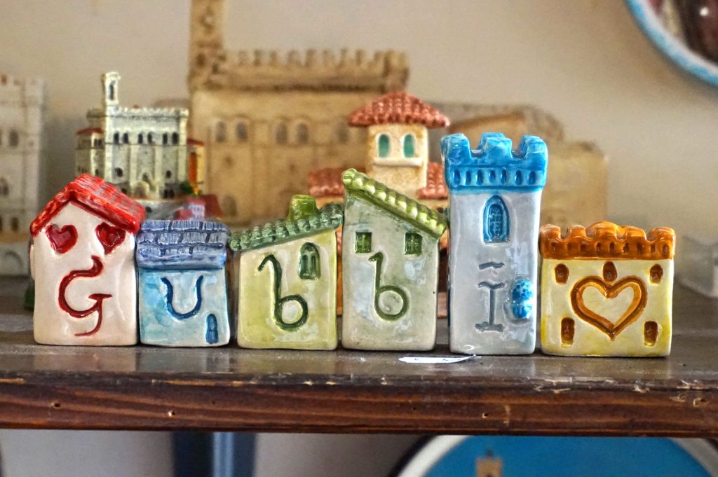 Gubbio egy hangulatos olasz kisváros Umbriában, az Appenninekben. Mindene megvan, ami egy olasz kisvárosnak „kell”: paloták, templomok, lépcsős sikátorok, sőt még római színháza is van. Hangulatát jól szemlélteti egy ajándékbolt kirakata. Világhíressé azonban egy középkori legenda és egy tudományos rejtély megfejtése tette. Assisi Szent Ferenc és híres geológusok nyomába eredünk az alábbi írásban.