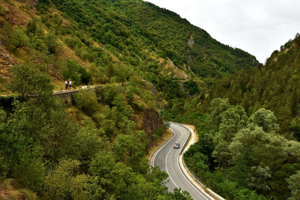 A Bottaccione-szurdok: lent az országút, balra fent a középkori csatorna látszik (fotó: Telbisz T.)