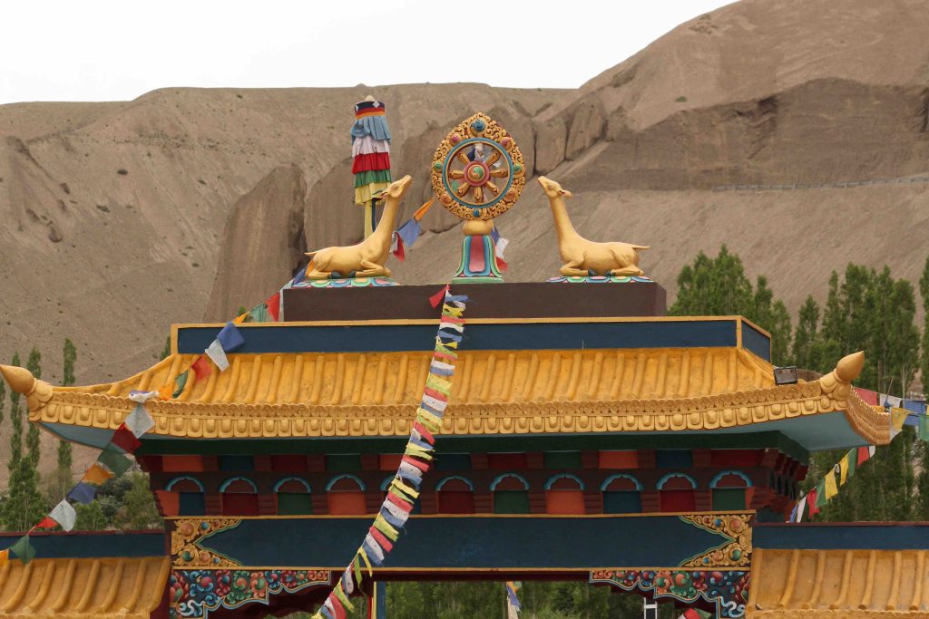A buddhista kolostorok tetején látható egy kerék két gazella között. Ez a kerék a tudás kerekét szimbolizálja, a 8 küllő a helyes életmódot (pl. helyes beszédet, cselekvést, erőfeszítést). A gazellák pedig arra utalnak, hogy Buddha első tanítását Benáresz (korábban Varanasi) melletti Gazella parkban tartotta.