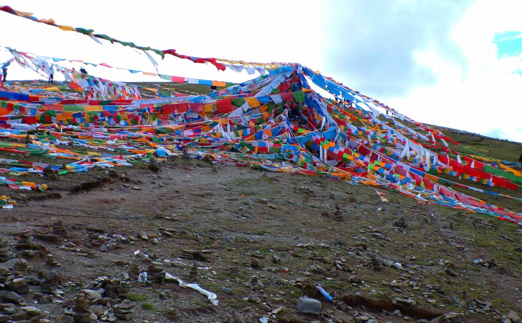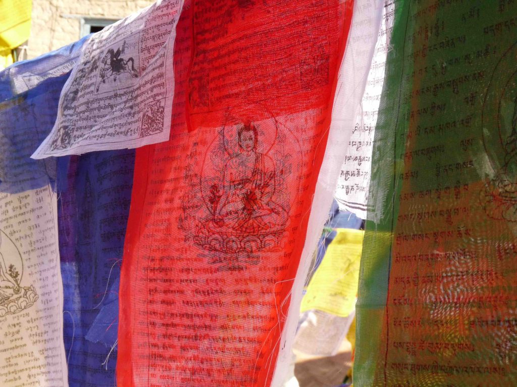 Ha Tibetben egy városban sétálunk, a kolostorok mellett a házakon, vagy sziklákon, hegyek tetején is találkozhatunk színe imazászlókkal. A zászlókra imaszöveget is írnak azért, hogyha a szél fújja azokat, az imák messzire jussanak. A zászlók színeinek is szimbolikus jelentésük van: a kék az egészséget és a békét, a fehér a tisztaságot, a vörös a bölcsességet, a zöld az együttérzést, a sárga pedig az akadályok feletti győzelmet jelképezik.