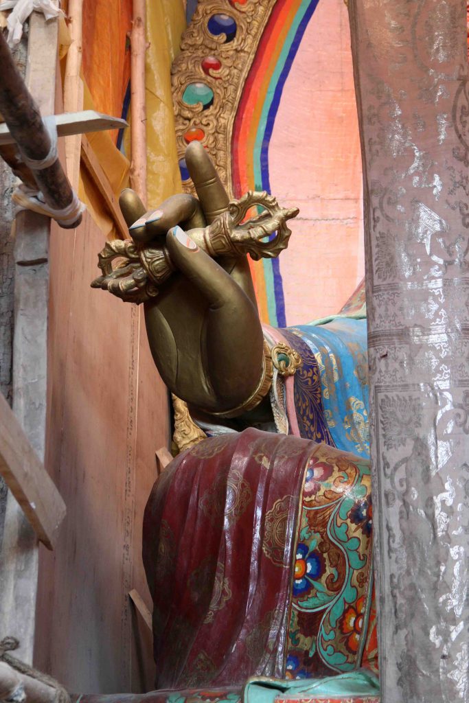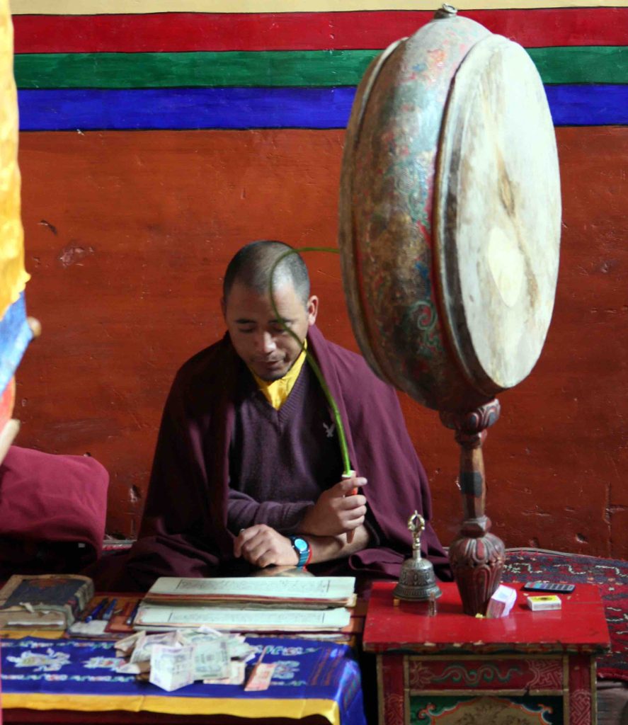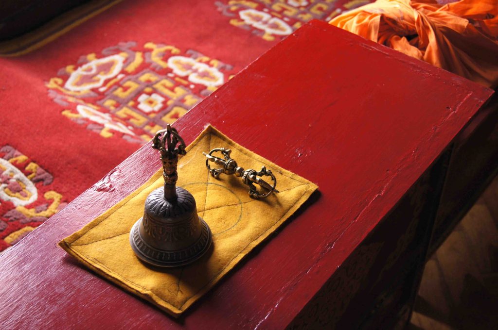 Ha egy tibeti szerzetes a kolostorban imádkozik, a jobb kezében ún. vadzsra, egy „villámjogarszerűség” van, amelyet eredetileg meteorit anyagából készítettek, ma bronz, réz az anyaga. A bölcsesség erejét, Buddha tanítását jelképezi. A bal kezében pedig a ganthat (harangot) tart, aminek a feladata a tudat tisztaságának a felébresztése, csengése Buddha tanait erősíti.