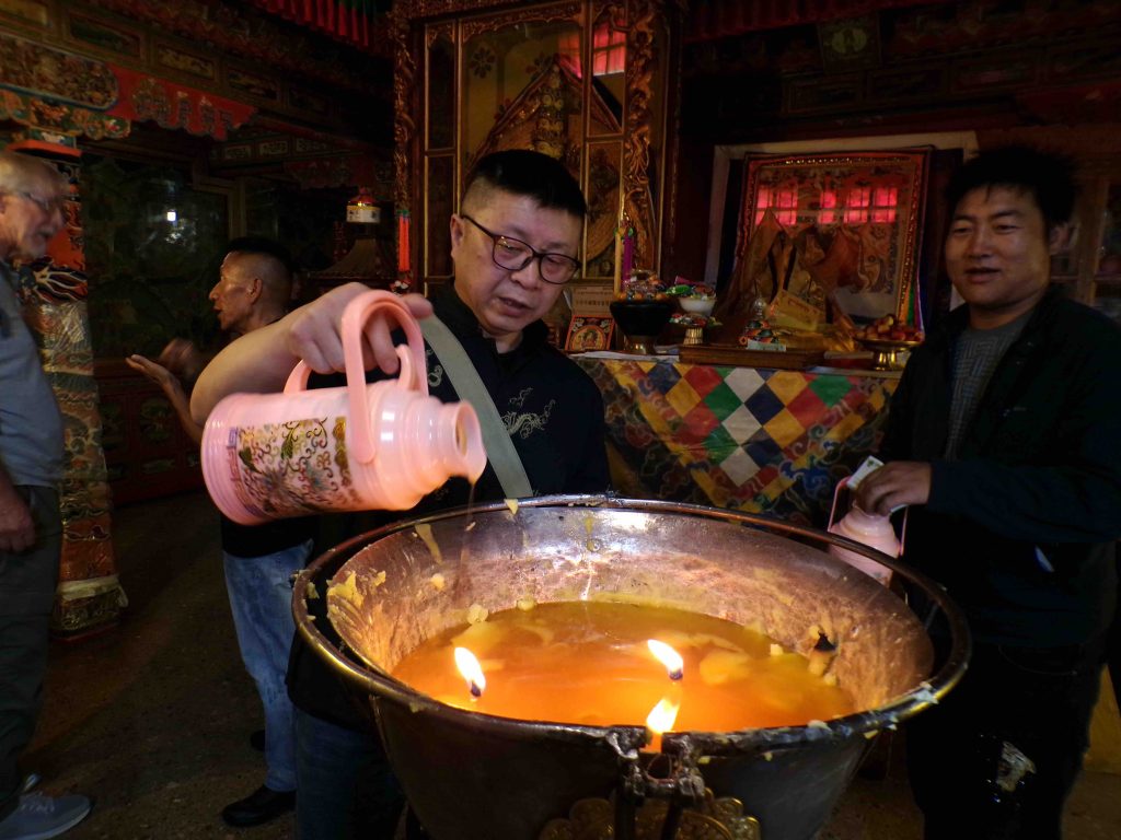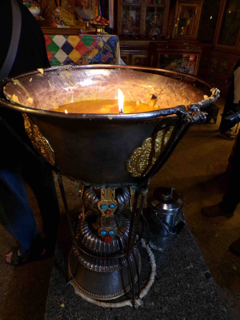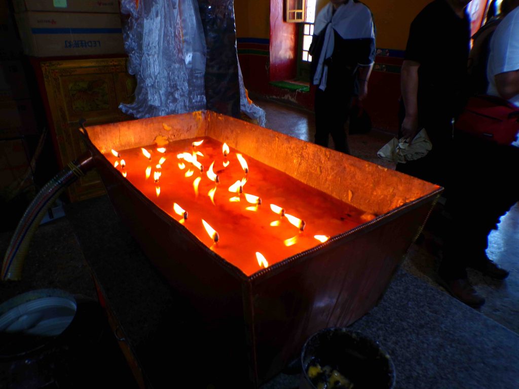 A kínai kolostorok előtt hosszan húzódnak a gyertyaárusok standjai. Tibetben jakvajat árulnak műanyag dobozban, amit a kolostorban kanállal tesznek a mécsestartókba, vagy olvadtan öntögetnek a hívők a zarándoklatra kikölcsönzött termoszkannából. A mécsesek, gyertyák fénye a megvilágosodás útját mutatja, és eloszlatja a tudatlanság sötétjét, segíti a megvilágosodást.